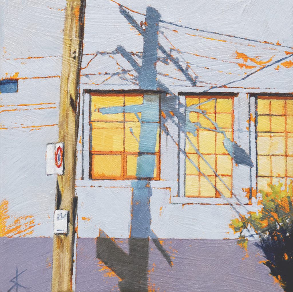 Seeing the same streetscape over and over, I’m always fascinated by how it changes so dramatically in different light conditions. Even on a grey day, or in the rain. If you look, you can see beauty in almost anything, but one of my favourite times of day is the very late afternoon. The light at this time is very warm and rich, but in just a few minutes everything changes and it will be gone forever. These paintings capture those few perfect moments.